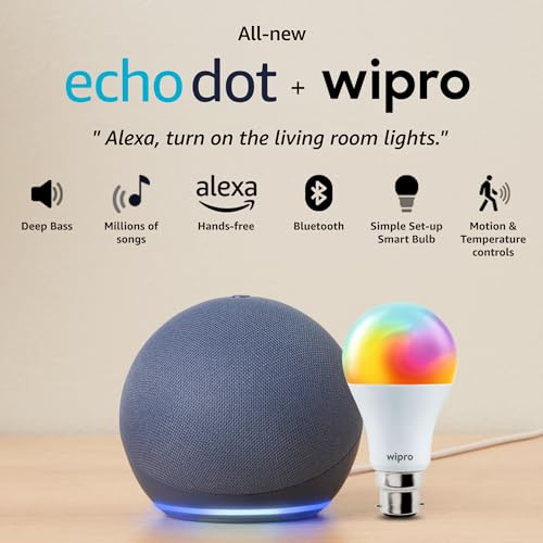 This combo contains Echo Dot (5th Gen) and Wipro Simple Setup 9W LED Smart Bulb.